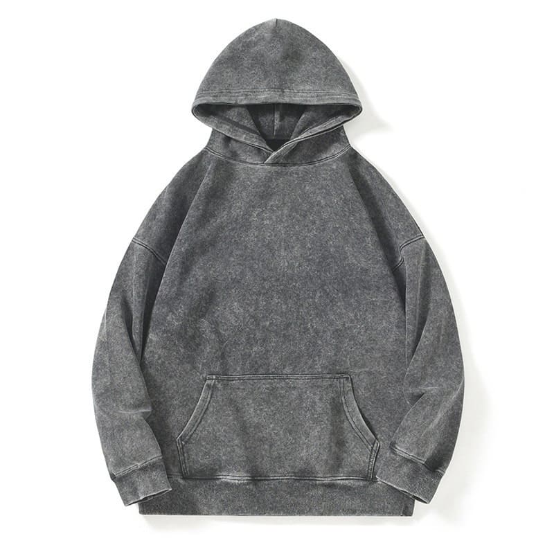 Washed oversized hoodie: cotton blend, no synthetics, vintage texture + kangaroo pocket—artisan-crafted for cozy