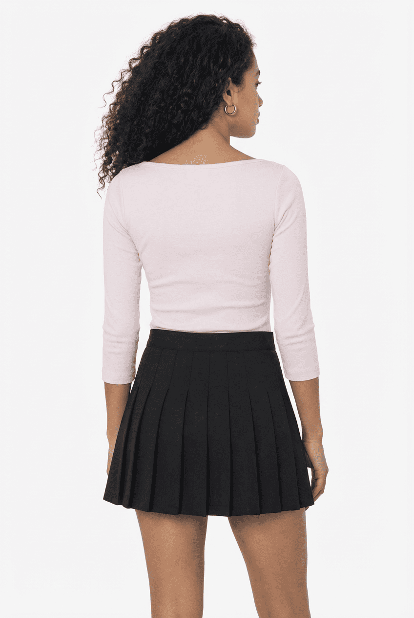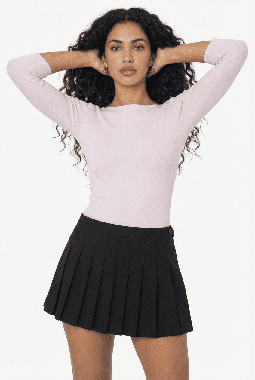 Stretchy pleated A-line mini skirt: soft fabric, structured pleats, multi-color, bulk customization supported.