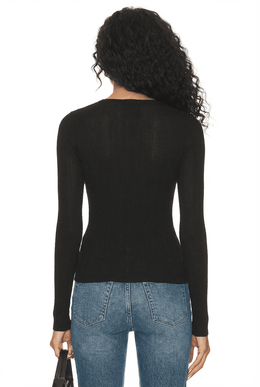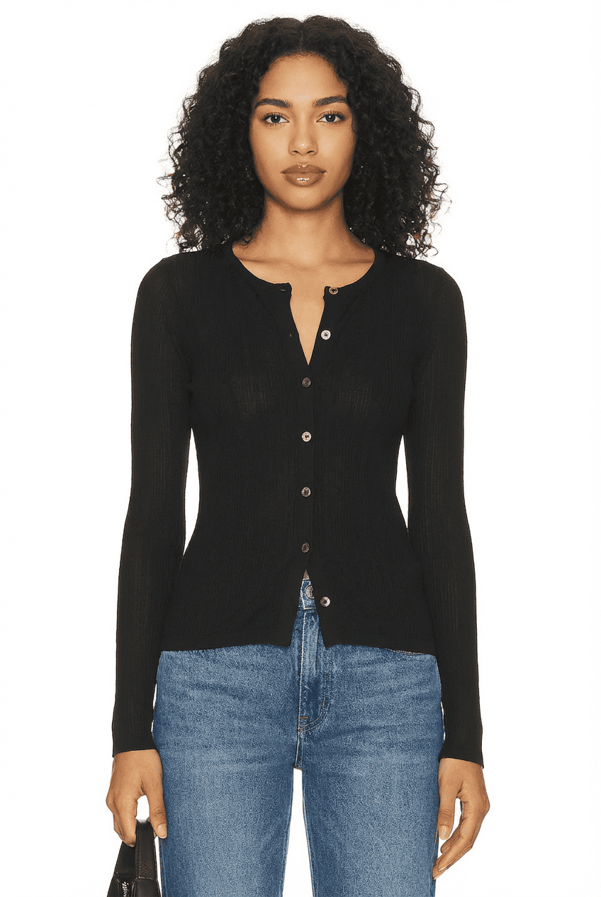 Stretchy Ribbed Knit Fitted Button Crew Neck Long Sleeve Cardigan Top
