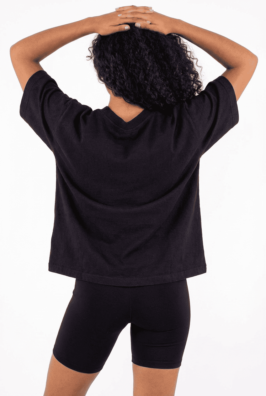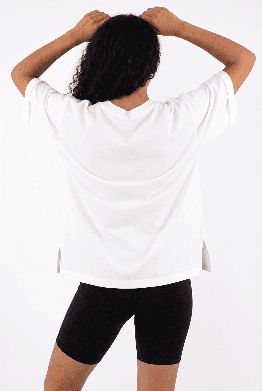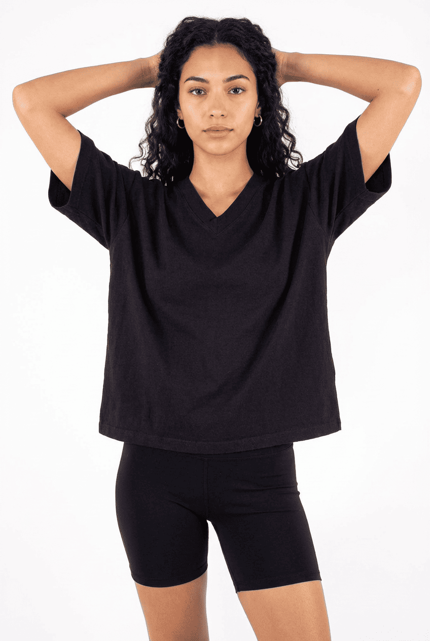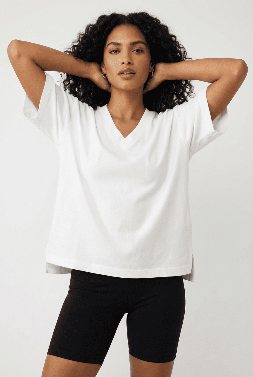 Oversized V-neck tee: soft fabric, side slits, multi-color, bulk customization supported.